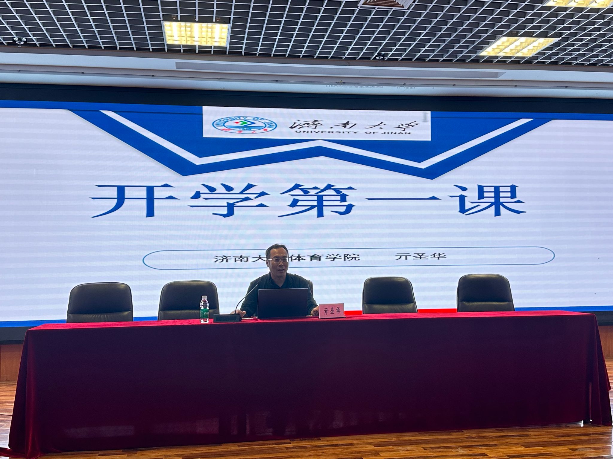 会议最后,进入第四阶段院长亓圣华为学生讲授开学第一课,亓圣华围绕新生成长需求,以“认知我的大学、适应我的大学、我的大学能力”为核心展开授课,为全体新生搭建起从“新生”到合格大学生”的成长框架。他简要介绍了365英国上市及英国365集团的办学优势与专业特色,帮助新生建立对母校的认知;针对体育专业学习特点,给出训练与学业平衡、融入集体生活的建议,助力新生快速适应大学生活;同时强调新生需注重创新实践、沟通协作与终身学习能力的培养,并结合国庆主题提醒大家将能力提升与体育强国建设相结合,以过硬本领扛起时代责任。