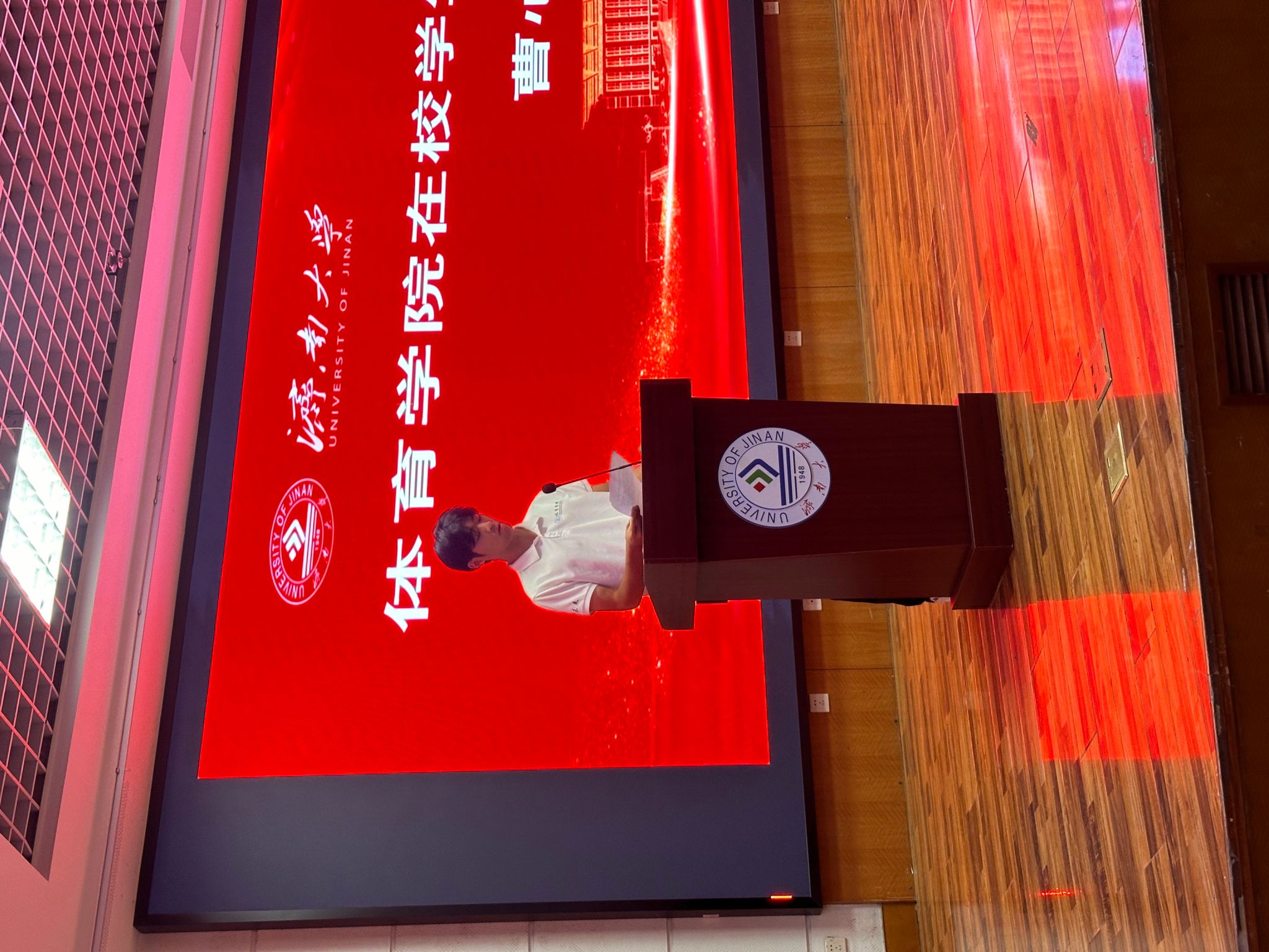 学院党委书记孙成豪发表致辞。他首先代表学院对2025级新生的到来表示热烈欢迎,并结合自身28年济大人经历,分享了见证济大从起步到壮大的历程,让新生们更直观地感受到学校的发展底蕴与体育人的使命担当。他向新生提出四点嘱托:一是坚守理想,锚定“为国争光”,将个人成长与体育强国建设紧密结合,把“为国争光”的信念融入专业学习与未来发展,以远大志向指引青春方向;二是勤学善思,筑牢本领根基,既要刻苦打磨运动技能,也要扎实学习体育理论知识,关注体育科技前沿动态,做到理论与实践相互促进,练就过硬专业本领;三是直面挑战,不惧失败挫折,体育之路难免遇到训练瓶颈、比赛失利,要学会从失败中总结经验、调整心态,把每一次挫折都转化为成长的动力,以坚韧意志攻克难关;四是珍惜资源,主动请教榜样,学院拥有优秀的师资团队、经验丰富的学长学姐与完善的训练设施,要主动向老师请教专业难题,向优秀校友、学长学习成长经验,充分利用身边资源加速自身成长,展现济大学子积极进取的风采。