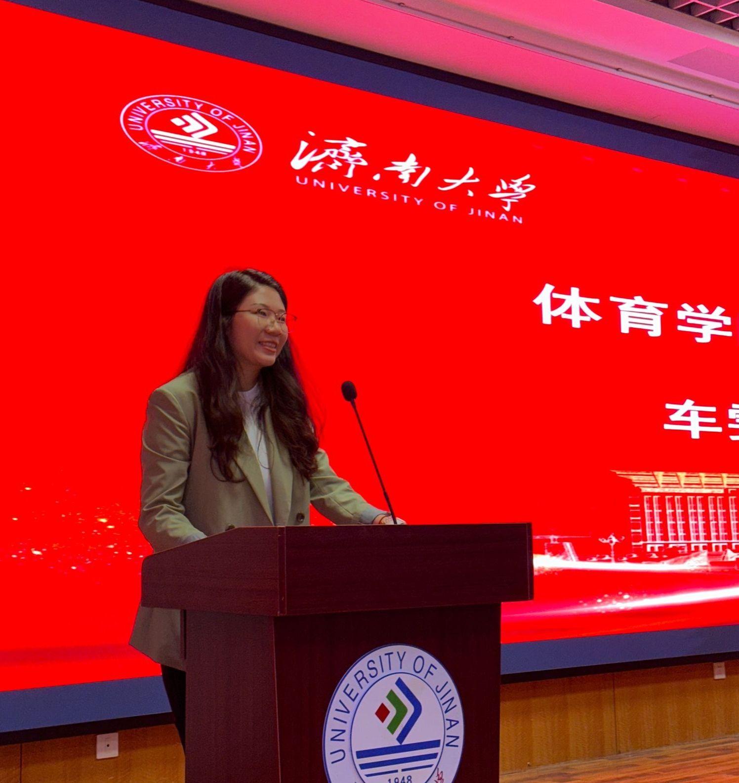 聘书颁发仪式后,教师代表副院长车雯上台发言。她结合体育学科特色,从专业学习、品格塑造、运动精神传承等方面与新生分享心得,鼓励新生们以坚韧的意志、拼搏的姿态深耕专业领域,在体育竞技与学术探索中追求卓越。