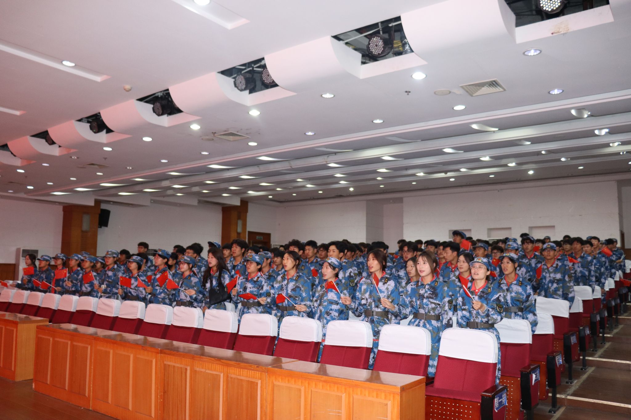 第三阶段,全体新生在新生辅导员王梦晗的带领下庄严宣誓。“我志愿:爱党爱国,矢志不渝守初心;弘毅博学,求真至善修本领;崇德睿智,创新拼搏强自身;不负韶华,为校争光永担当!”铿锵有力的誓言,不仅是新生们对未来的承诺,更是他们以青春之名向祖国立下的铮铮誓言,将现场氛围推向高潮。